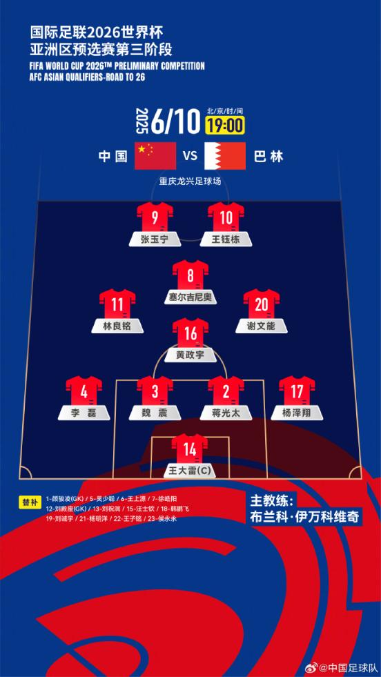 王钰栋进球 国足1比0胜巴林队 18强赛成绩单:积9分小组第五